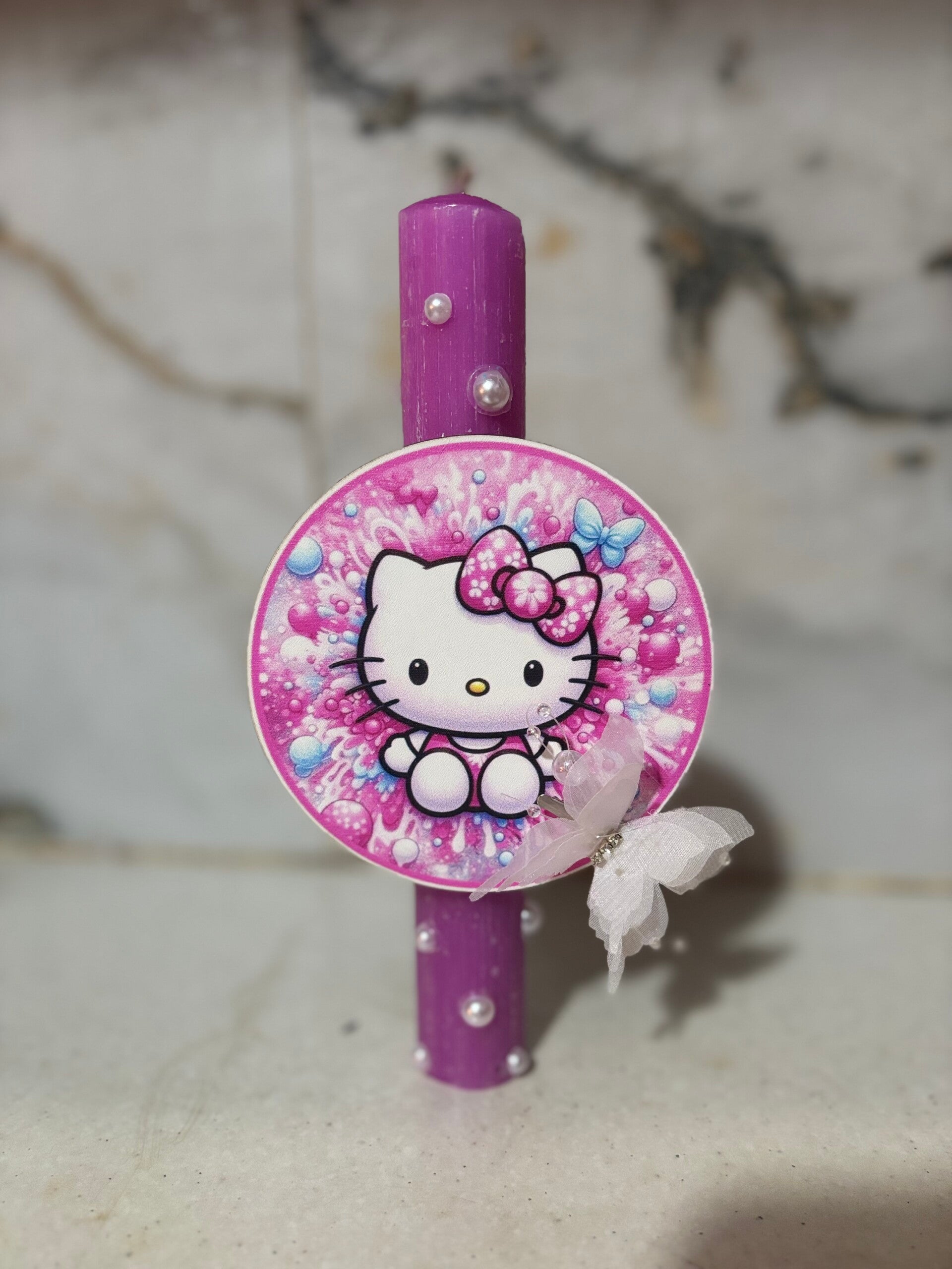 Ποτήρι snow globe tumbler μαζί με λαμπάδα hello kitty σε μοναδικά χρώματα που ξεχωρίζουν