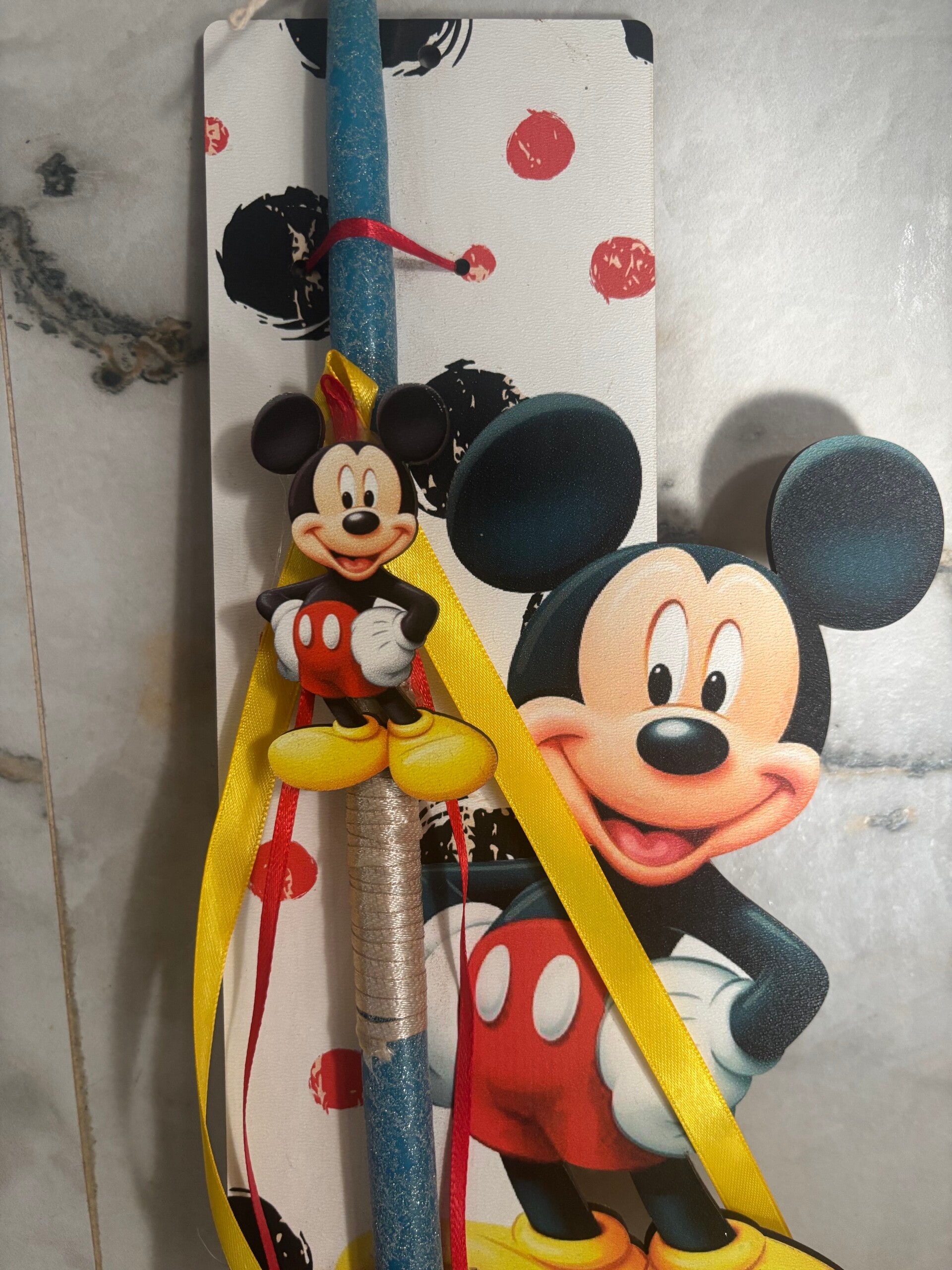 Πασχαλινή λαμπάδα με θέμα τον αγαπημένο Mickey Mouse, ιδανική για μικρούς φίλους που λατρεύουν τους διαχρονικούς ήρωες της Disney.